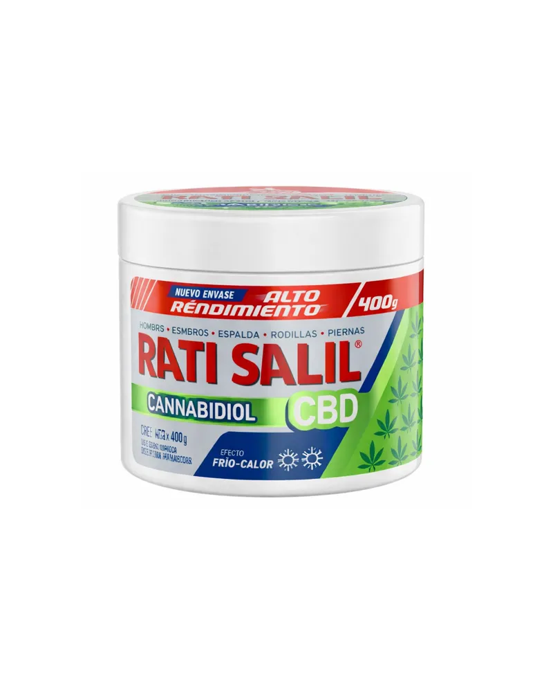 La crema RATI SALIL CBD x 400 g es un producto de uso tópico formulado para aliviar molestias musculares y articulares, combinando ingredientes calmantes y un efecto frío-calor que ayuda a relajar zonas tensas del cuerpo. Su presentación de 400 g ofrece una mayor cantidad ideal para uso frecuente en hombros, espalda, rodillas, piernas y otras áreas de tensión o dolor.