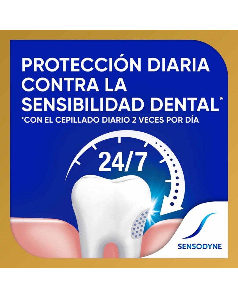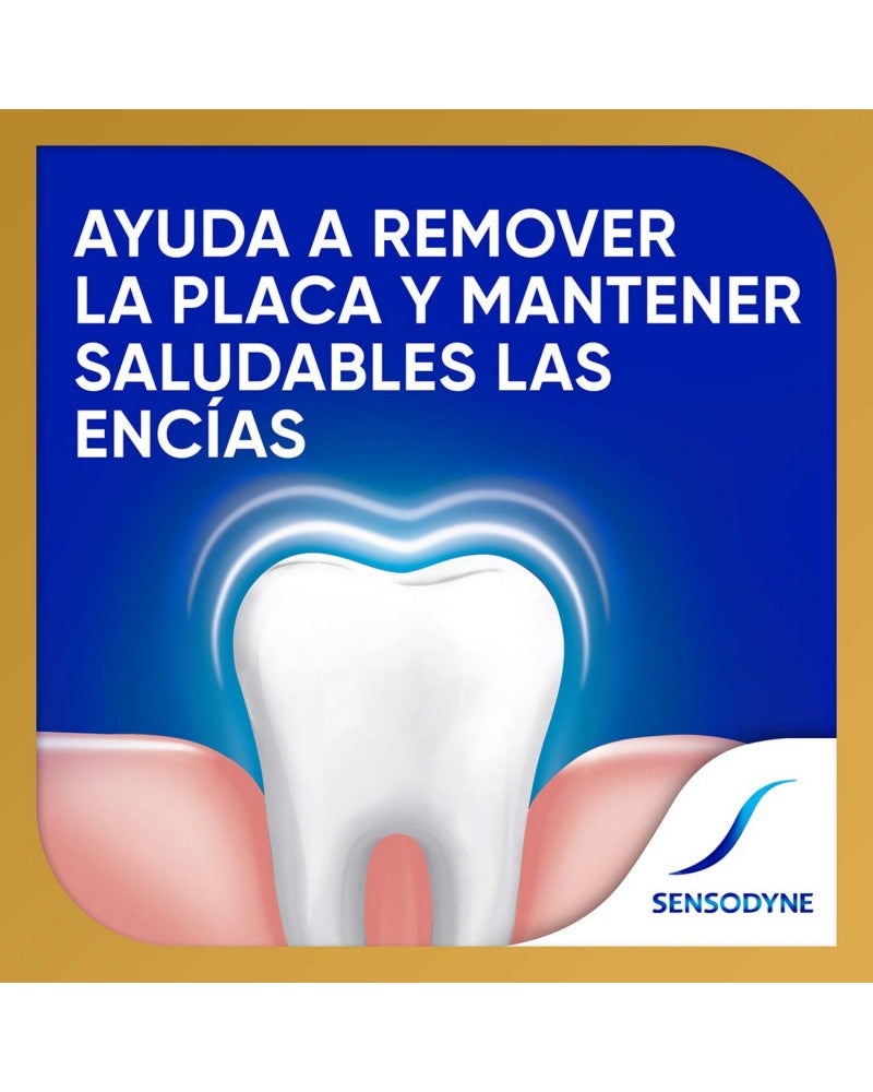 Sensodyne Multi Protección Fórmula Avanzada, promueve 24 horas* de protección contra la sensibilidad. Además, contiene citrato de zinc que con el cepillado habitual ayuda a mantener las encías sanas. * Con el cepillado diario 2 veces al día. • Provee protección contra la sensibilidad. • Ayuda a remover la placa y a proteger contra las caries. • Con el cepillado habitual ayuda a mantener las encías sanas. • Su sabor a menta deja una sensación limpia y fresca en la boca. • Con el cepillado habitual ayuda a mantener las encías sanas. • Ofrece todos los beneficios que brinda una pasta dental de uso diario. * Con el cepillado diario 2 veces al día.