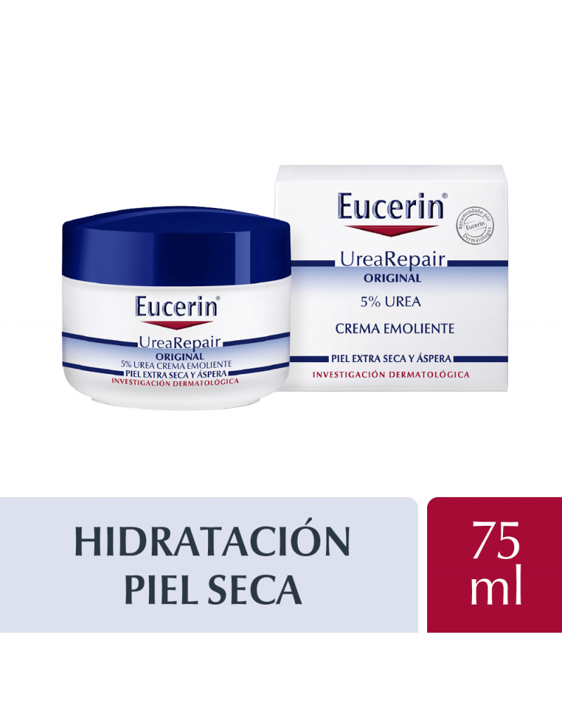 Eucerin UreaRepair Crema Urea 5% brinda hidratación intensa a la piel seca y muy seca. Se reduce notablemente la aspereza y la tirantez, brindándole a la piel un aspecto terso y elástico.