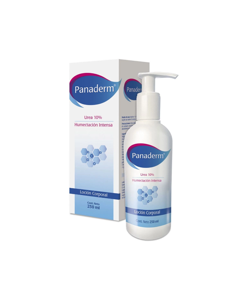 INFORMACIÓN DEL PRODUCTO PANADERM® es una loción corporal formulada con urea al 10 % y está especialmente indicada para restaurar la barrera cutánea, y humectar en forma intensa las pieles secas y muy secas. La Urea es uno de los humectantes naturales más efectivos y su disminución en la piel da lugar a alternaciones varias. La Urea restaura la barrera cutánea y humecta en forma intensa la piel seca y/o muy seca. Una piel sana requiere cuidado y por esto es importante mantenerla limpia y humectada. Dermatológicamente testeado. MODO DE USO Aplicar 1 ó 2 veces al día sobre la piel de todo el cuerpo. Uso diario.