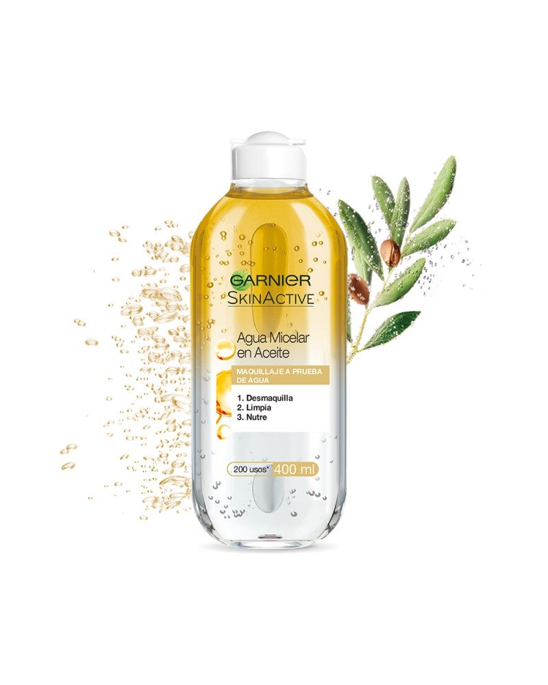 El agua micelar bifásica desmaquilla , limpia y nutre en un solo gesto rostro, ojos y labios. Una fórmula que combina la eficacia de las micelas con el aceite de argán capturando las impurezas como un imán, incluso el maquilaje a prueba de agua, sin frotar.El aceite de argán es un óleo, conocido por sus propiedades nutritivas y reconfortantes