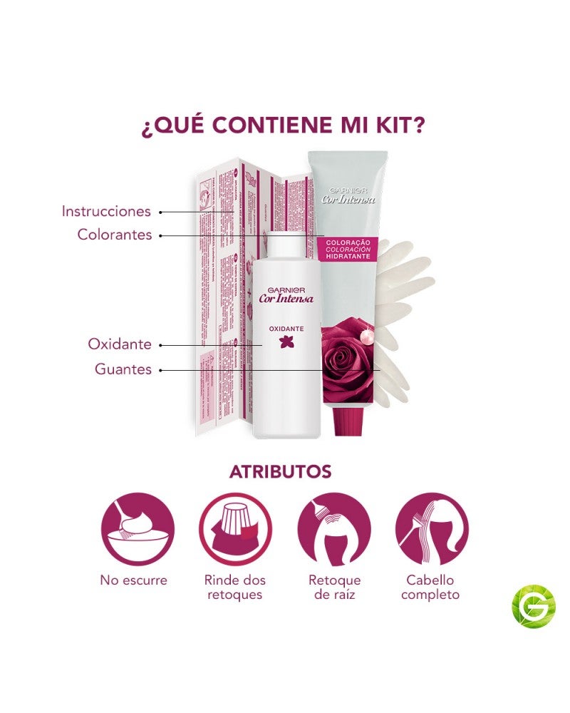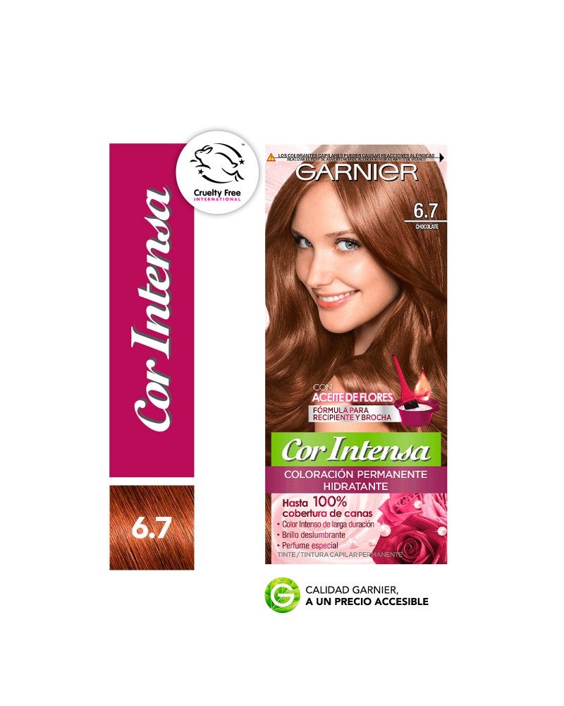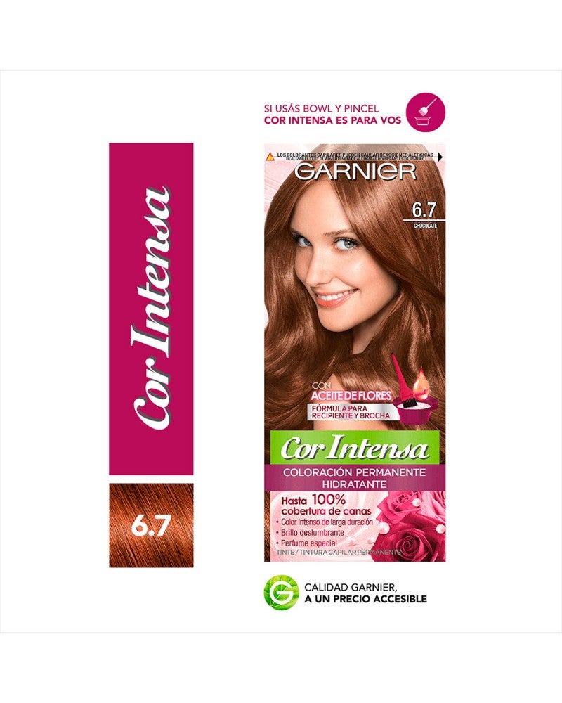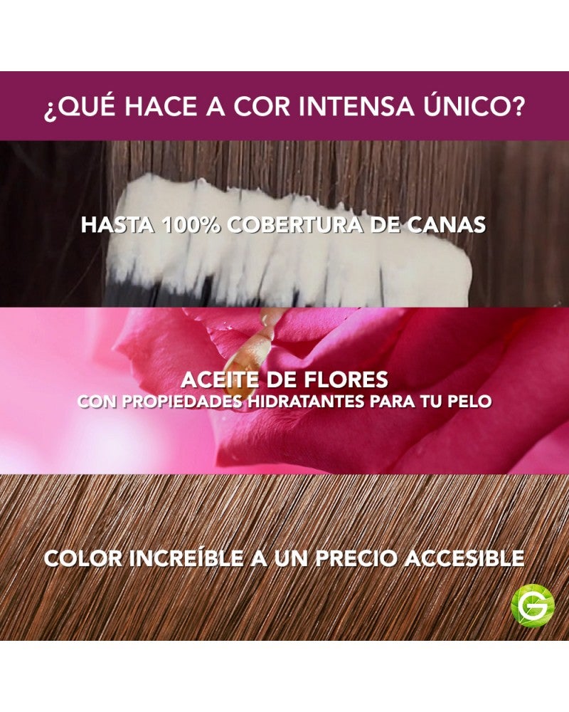 Coloración permanente hidratante Cor Intensa de Garnier. Para aquellas mujeres que buscan el mejor resultado, con 100% cobertura de canas y color de larga duración.