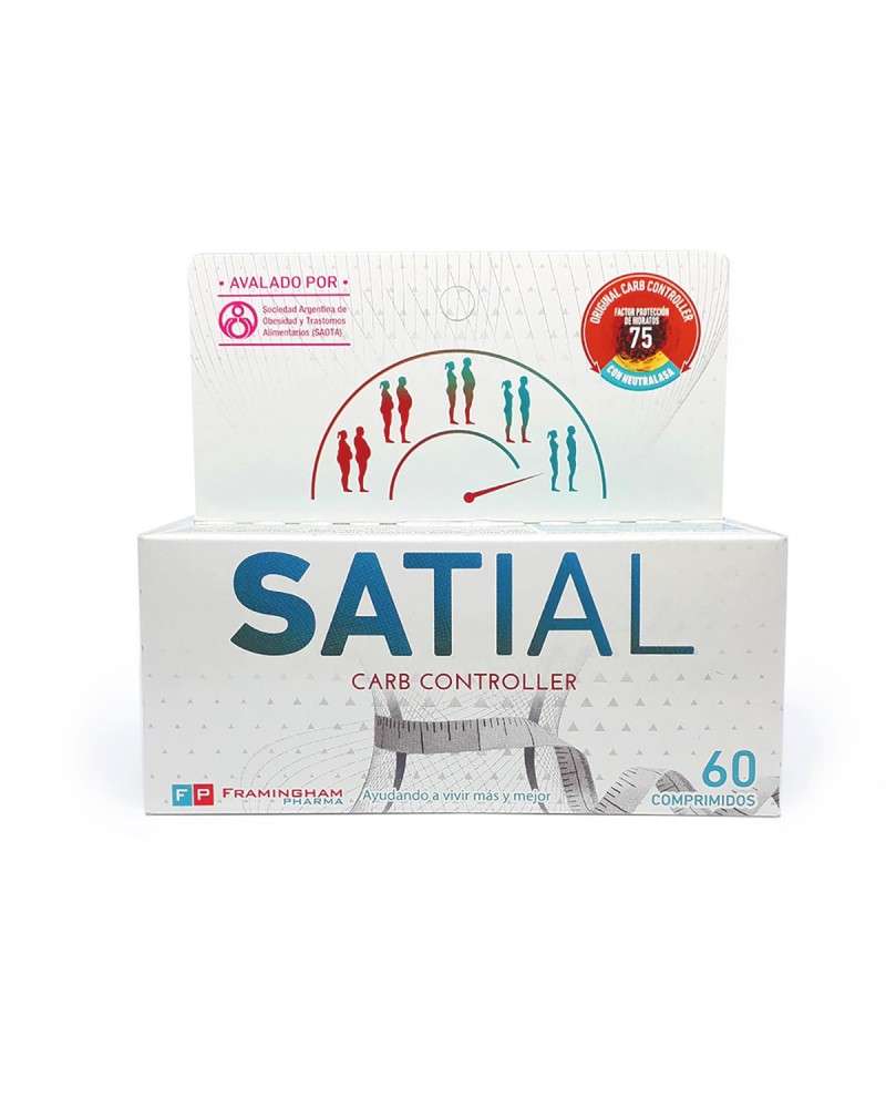 Satial Carb Controller presentación por 60 comprimidos. Es un complemento de la alimentación elaborado en base de ingredientes naturales, que han demostrado en ensayos preclínicos y clínicos su capacidad de disminuir la absorción de hidratos de carbono. Siendo su materia prima original, el primer y único bloqueador de Hidratos de Carbono, con respaldo científico. El componente activo principal es un nutriente específico no estimulante del extracto de poroto blanco, que ha demostrado clínicamente reducir la absorción y digestión del almidon presente en los alimentos hasta en un 75%. Su acción reduce el impacto calórico de los alimentos ricos en almidón, y también disminuye la respuesta de la glucosa y el índice glicémico. Cuando se utiliza junto con una dieta adecuada y ejercicio, SATIAL CARB CONTROLLER ayuda en el control del peso, permitiendo disfrutar alimentos ricos en carbohidratos. La formulación exclusiva de SATIAL CARB CONTROLLER contiene zinc quelatado, logrando de esta manera el aporte del mineral en su forma orgánica, facilitando su absorción, permitiendo que cumpla su función esencial en el metabolismo de los hidratos de carbono.