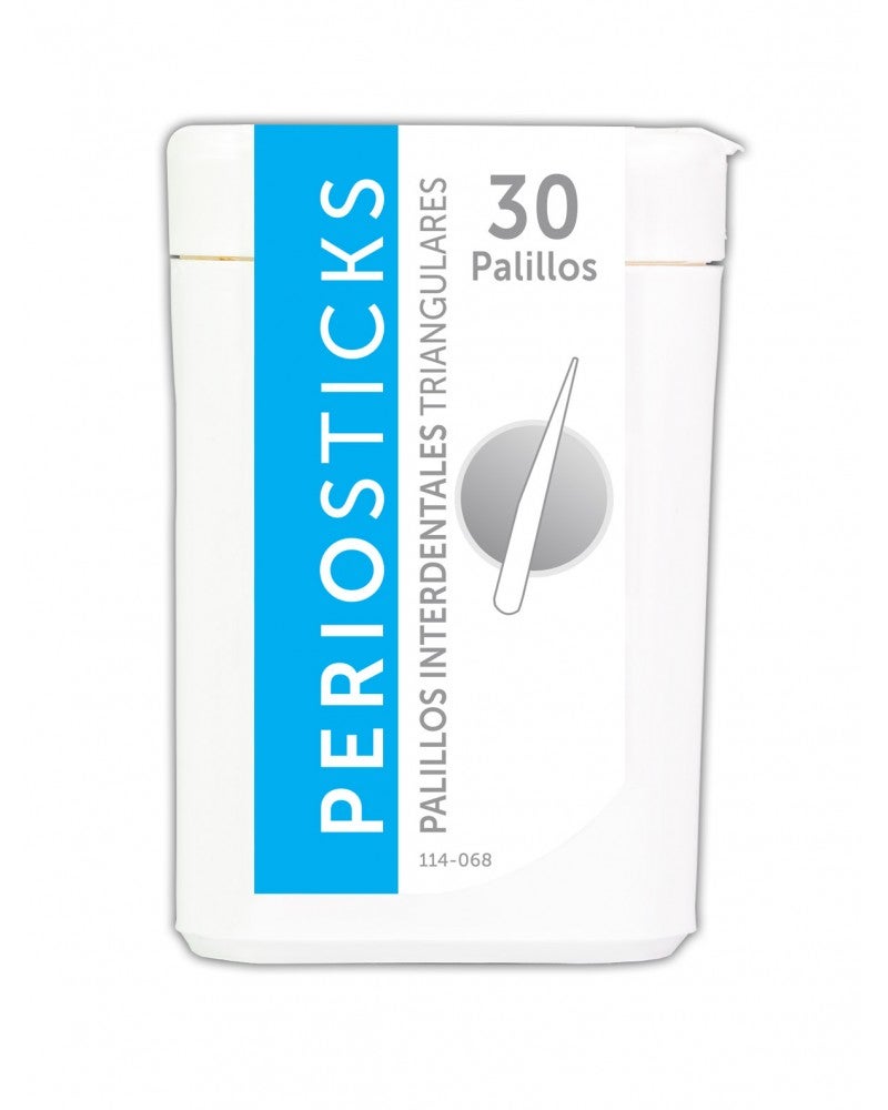 Palillos Interdentales. Palillos Interdentales triangulares, de alta tecnología, diseñados por odontólogos. Bucal PerioSticks, realizados en material higiénico flexible ayudan a la correcta remoción de la BioFilm (Placa Bacteriana), limpiando los espacios interdentales con facilidad y eficacia. Superficie Rugosa. No se quiebran ni astillan. Fáciles de utilizar. Aptos para puentes, implantes y aparatos de ortodoncia. Presentación: Práctica Caja con 30 palillos.