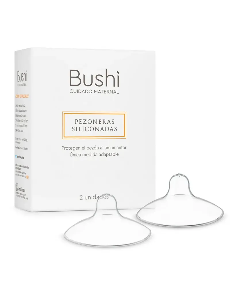 Seguir estas indicaciones para que el bebé pueda succionar fácilmente y no se interrumpa la lactancia materna cuando los pezones se encuentran sensibles o agrietados. 1) Ubicar el pezón en la cavidad de la Pezonera Siliconada Bushi.2) Desplegar la Pezonera Siliconada Bushi, de manera que la misma cubra firmemente la aréola. En caso de que las pezoneras no se adhieran firmemente sobre la piel, aplicar Crema de Caléndula Bushi en el contorno interno de las Pezoneras Siliconadas Bushi, en los pezones y aréolas, para lograr mayor adherencia contra el pecho. Son adaptables a todo tipo de pecho y están elaboradas con siliconas de alta calidad, brindando seguridad al bebé y a su mamá. Esterilización:Luego de amamantar, esterilizar dejándo las pezoneras en agua hervida durante 5 minutos.