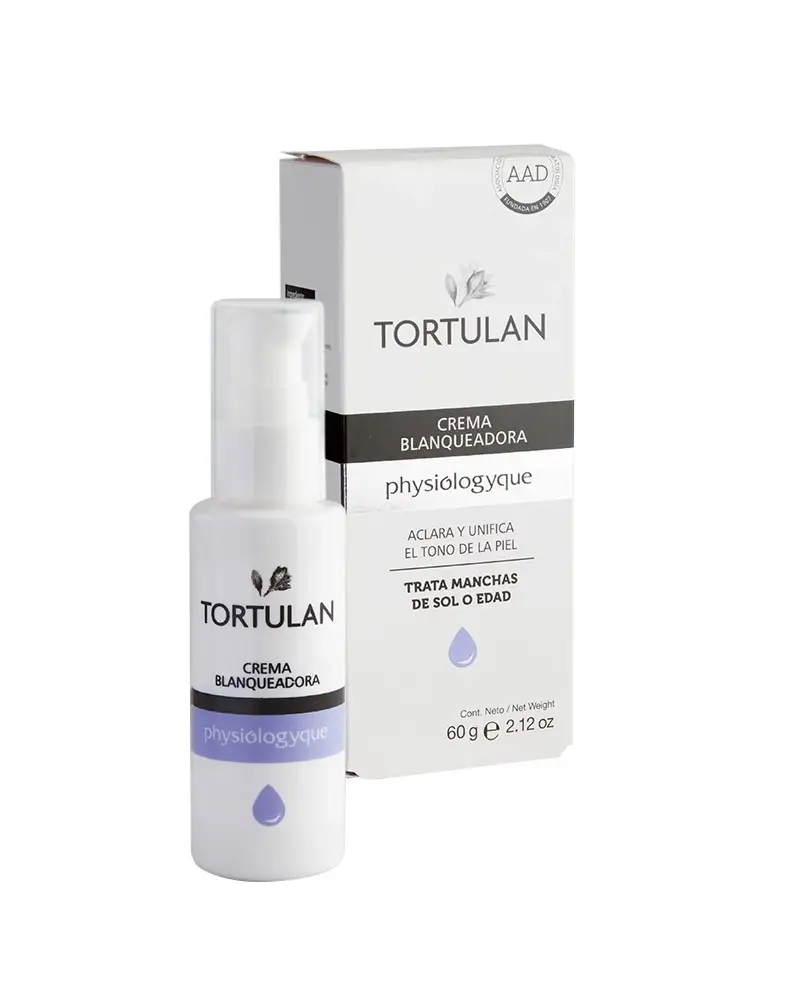 Tortulan® Physiologyque® Crema Blanqueadora contiene una eficaz combinación de Symwhite® e ingredientes antioxidantes que ayudan a promover la despigmentación paulatina de manchas comunes en la piel y la limitación de producción de melanina para también ayudar a incrementar la luminosidad y claridad del tono. Estudios in-vitro muestran que Symwhite® asociado a esos antioxidantes tiene una efectividad 22 veces superior a otros despigmentantes comunes (como el ácido kójico, arbutina, hidroquinona) y sus resultados comienzan a ser apreciados mucho más rápido, tan sólo al cabo de 7 días! Efectivo para aclarar manchas solares tanto como manchas producidas por métodos químicos ó depilación láser.