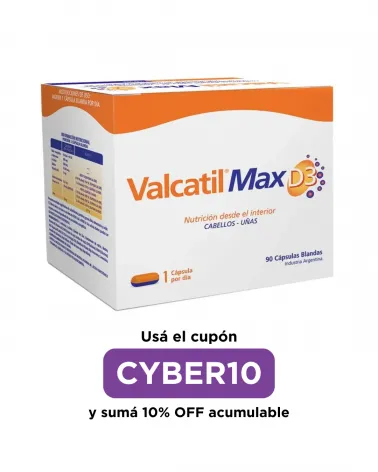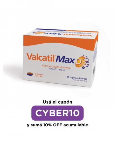 -30% VALCATIL - Max D3 X 90 Cápsulas Precio regular $ 85.191,00 -30% Precio $ 59.633,70 Fórmula completa y natural para la salud de cabellos y uñas, con agregado de Vitamina D3. Aporta los elementos necesarios para ayudar a fortalecer... Agregar al carrito