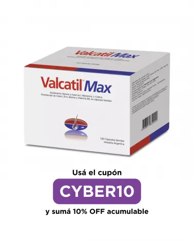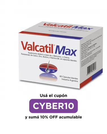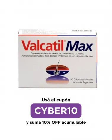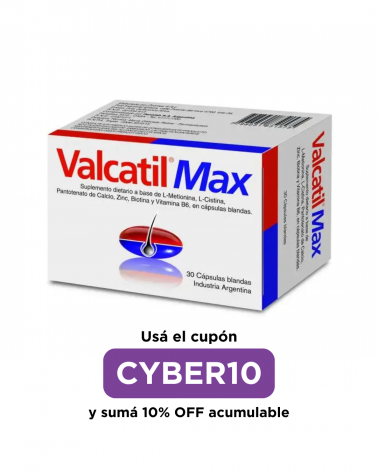 -30% VALCATIL MAX - x 30 Cápsulas Precio regular $ 30.216,00 -30% Precio $ 21.151,20 Ideal para caída del cabello, alopecias, fragilidad capilar, seborrea del cuero cabelludo, uñas frágiles, escamosas, deficit del crecimiento ungueal. Agregar al carrito