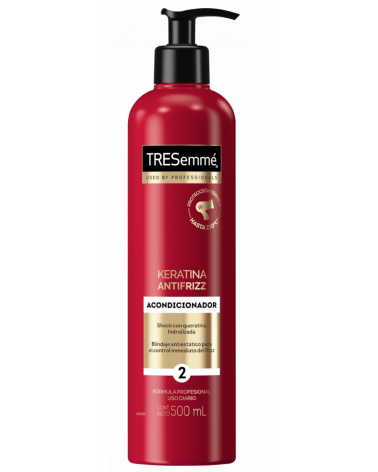 TRESEMME- Acondicionador Keratina Antifrizz x 500 ml Precio $ 8.867,00 Acondicionador Keratina Antifrizz, acción de blindaje antiestático para control instantáneo del frizz. Agregar al carrito