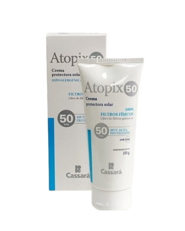 ATOPIX - Protector Solar Fps50 Mineral x 100 gr Precio $ 25.820,00 Protector Solar SPF 50 hipoalergénica compuesta 100% del filtros físicos. Libre de filtros químicos. Protección solar muy alta UVA - UVB. Atopix... Agregar al carrito