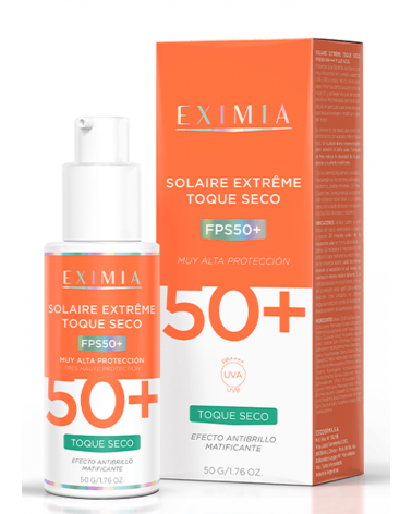 EXIMIA - Solaire Extreme Toque Seco Color Bomba x 50 ml Precio $ 29.000,00 TOQUE SECO Eximia Solaire Extreme Creme es un protector solar con muy alta protección UVB/UVA, FPS50+ apto para todo tipo de piel. Agregar al carrito