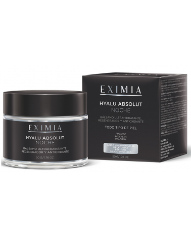 EXIMIA - Hyalu Absolut Crema De Noche Facial Antiage X 50 gr Precio $ 69.900,00 Bálsamo facial nocturno con ácido hialurónico 4D al 3%, melatonina y péptidos, que hidrata profundamente, regenera y reafirma la piel al dormir.... Agregar al carrito
