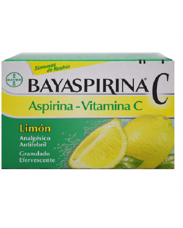 BAYASPIRINA C - Aspirina + Vitamina C x 1 Sobre Precio $ 1.144,00 Retiro en tienda Bayaspirina C limón de Bayer, alivia rápidamente los síntomas del resfrío gracias a la combinación de Aspirina y Vitamina C. Agregar al carrito