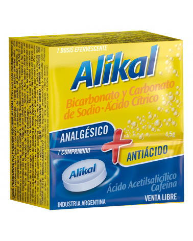 ALIKAL - Clásico x 1 Sobre Precio $ 720,00 Retiro en tienda Alikal es un medicamento que combina un comprimido analgésico y una sal efervescente antiácida. Se usa para aliviar la acidez, la indigestión ácida... Agregar al carrito