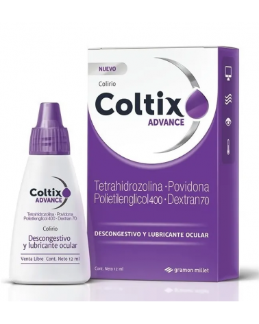 COLTIX - Colirio X 12 Ml Precio $ 10.280,00 Retiro en tienda COLTIX COLIRIO, formulado con Tetrahidrozolina, es un descongestivo ocular que alivia el enrojecimiento y calma la sensación de picazón ocular,... Agregar al carrito