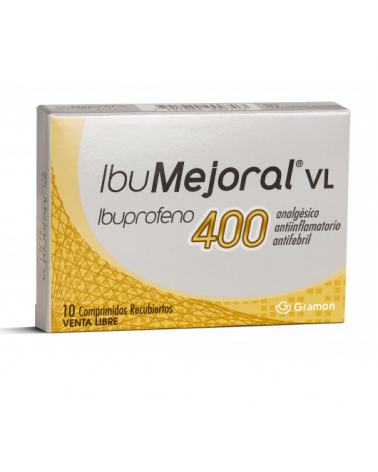 IBUMEJORAL - Ibuprofeno 400 mg x10 Comprimidos Precio $ 3.087,00 Retiro en tienda Alivio sintomático de dolores (musculares de espalda, de cabeza, menstruales, dientes), dolores asociados a estados gripales y para bajar la... Agregar al carrito