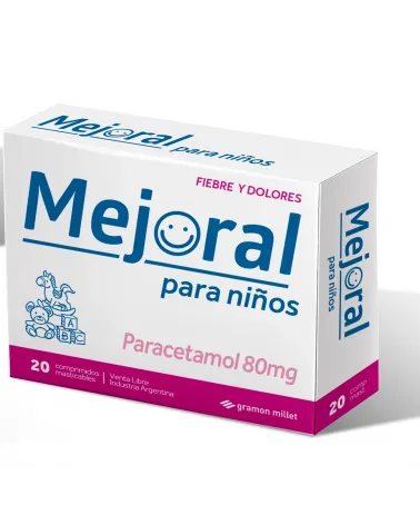 MEJORAL - Niños Paracetamol X 20 Comprimidos Masticables Precio $ 5.791,00 Retiro en tienda ANALGÉSICO Y ANTIFEBRIL EN COMPRIMIDOS MASTICABLES DE AGRADABLE SABOR. Agregar al carrito