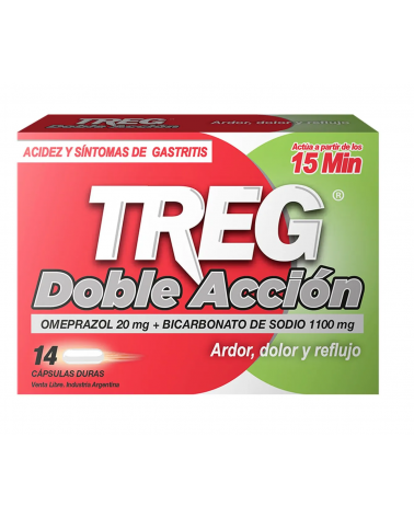 TREG - Doble Acción x 14 Cápsulas Precio $ 10.200,00 Retiro en tienda TREG Doble Acción es un producto de venta libre diseñado para ayudar a aliviar molestias relacionadas con la acidez estomacal y el exceso de... Agregar al carrito