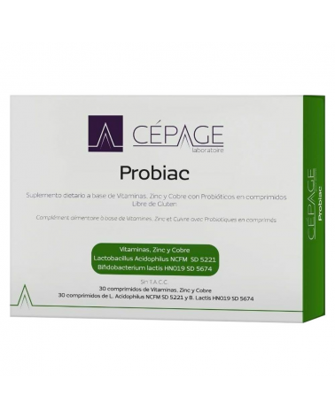CEPAGE - Probiac Suplemento Dietario X 30 Comprimidos Precio $ 42.500,00 Cepage Probiac es un suplemento dietario formulado para contribuir al equilibrio de la flora intestinal y favorecer el bienestar digestivo. Su... Agregar al carrito